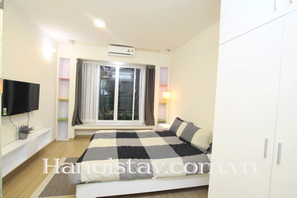 Cho thuê căn hộ mới được cải tạo ở Hàm Long, Hoàn Kiếm. Studio này rộng 40m2, được trang bị đầy đủ tiện nghi. Với căn hộ này có thể thích hợp cho 1-2 người lưu trú tại đây. Từ tòa nhà, người thuê nhà có thể đi bộ chỉ mất 5 phút đến hồ Hoàn Kiếm và Nhà hát lớn Hà Nội.